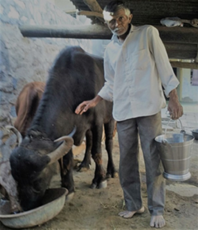 Zalabhai is 48 years old Zalabhai and owns a dairy business to support his family of six. He sellsthe milk that he gets from his buffalos at the local milk parlour which draws a good demand.
